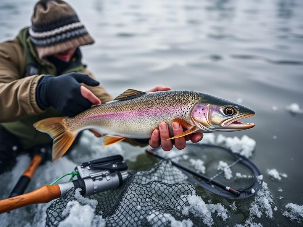 В холодной воде рыба медленнее, поэтому тяжёлые приманки и крупная анимация часто дают меньше результата. Лёгкие мормышки, мелкие балансиры и съедобные насадки в небольших объёмах — оптимальный выбор.